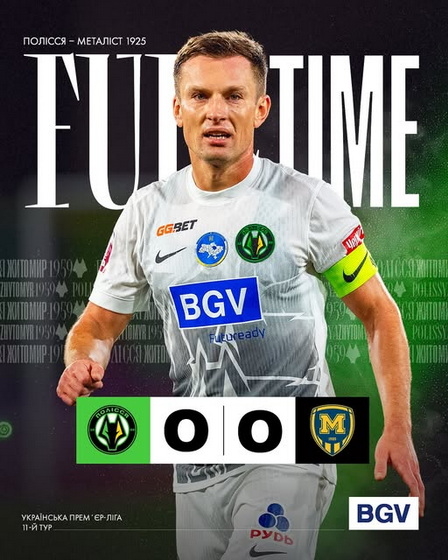 У 11 турі УПЛ житомирське «Полісся» зіграло у безгольову нічию з харківським ФК «Металіст 1925». Гра відбулася на центральному стадіоні у Житомирі.
