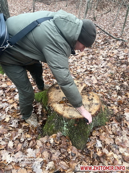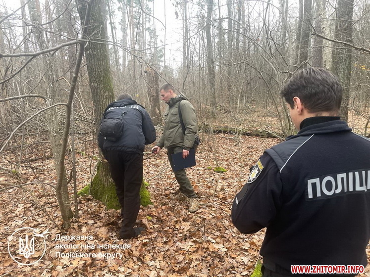«Під час здійснення заходів державного екологічного контролю у формі рейду на території Оліївської територіальної громади, яка входить до ПЕК № 1, поблизу м. Житомир, інспекторами Державної екологічної інспекції Поліського округу виявлено факт незаконної порубки 17 сироростучих дерев породи дуб. Порубку здійснено вздовж захисних лісонасаджень, що ростуть у смузі відведення залізниць уздовж залізничних колій. Особи, причетні до вчинення правопорушення, на місці були відсутні», - йдеться у повідомленні.