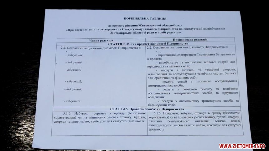 «Кількість об'єктів, які ми здаємо в оренду з різних причин зменшують, сума, яка є операційною – зменшується. Друге питання, ми будемо голосувати за ліквідацію певних установ, підприємств – це лягає на плечі адмінбудинку. А десь вони мають брати гроші, аби це все утримувати, охороняти, сплачувати комунальні послуги», – відповів депутат Житомирської обласної ради Руслан Годований.