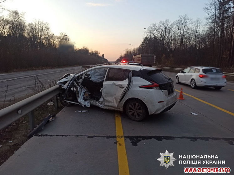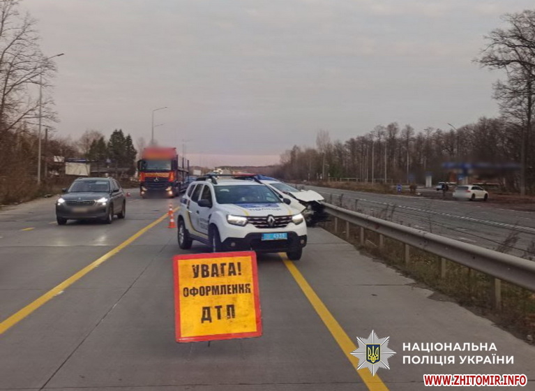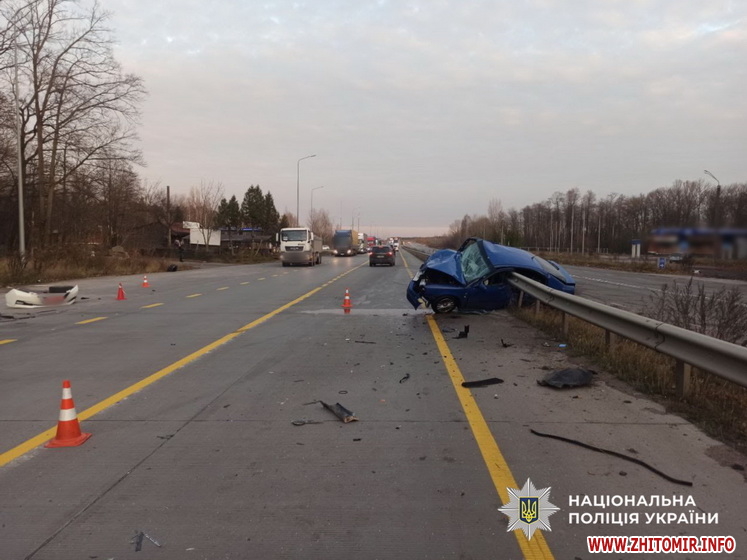 У передмісті Житомира в ДТП травмовані четверо людей, поліція встановлює обставини. Автотроща сталася 14 листопада на 141 км автодороги Київ - Чоп неподалік села Оліївки.