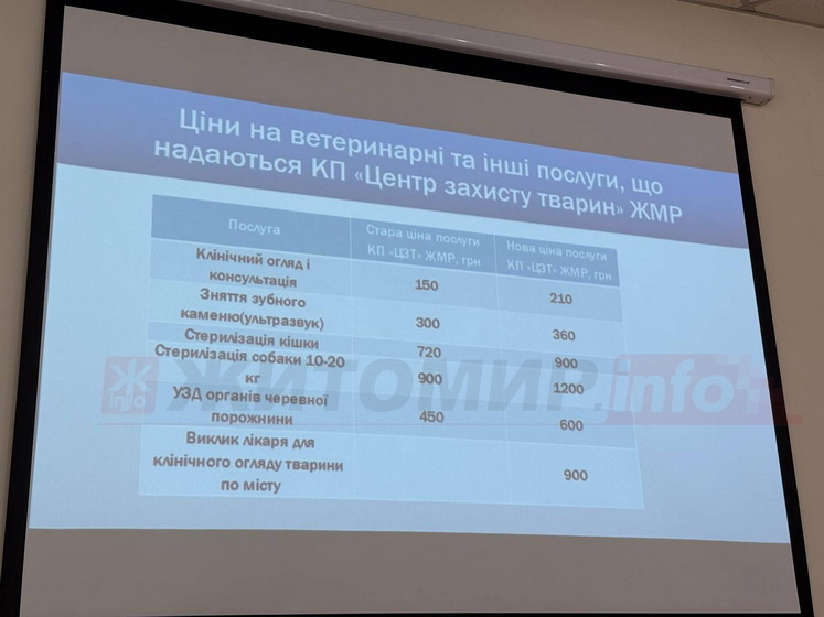 У житомирському комунальному підприємстві «Центр захисту тварин» зросте вартість ветеринарних послуг. Проєкт рішення «Про затвердження цін на ветеринарні та інші послуги» 19 листопада ухвалили на засіданні виконкому Житомирської міської ради.