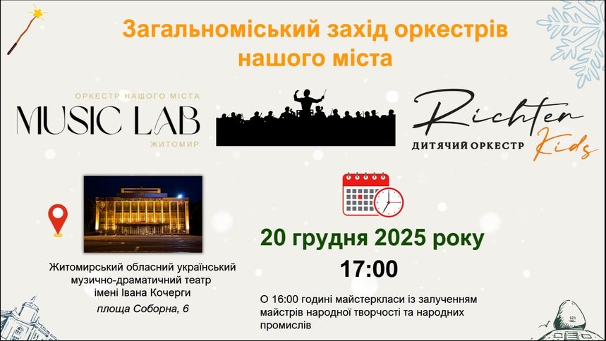 20 грудня організують майстеркласи від майстрів народної творчості. Також містян запрошують на благодійний захід оркестрів нашого міста.