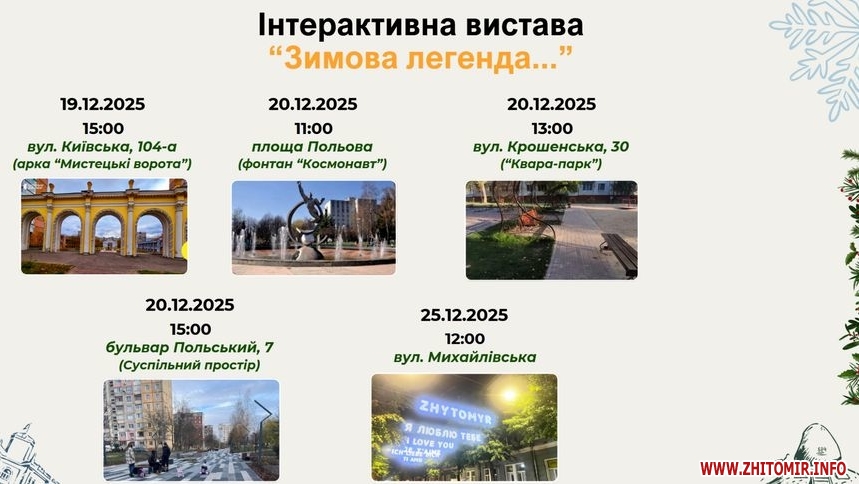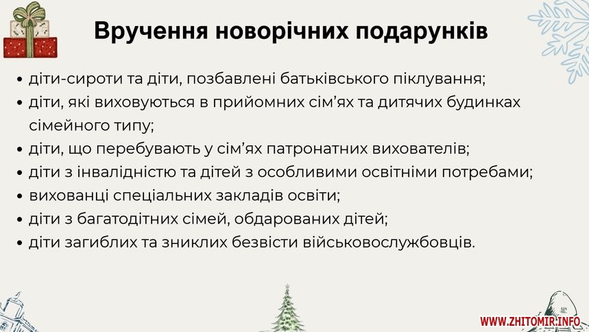 Для дітей та підлітків у Житомирі підготували різноманітні новорічні й різдвяні заходи: тематичну фотозону, святкові вистави та вручення новорічних подарунків.