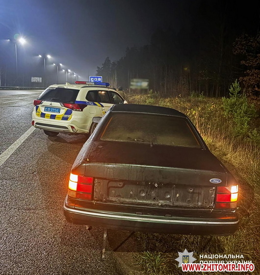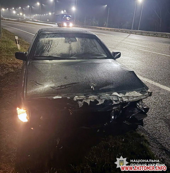 «21 листопада близько 23:20 правоохоронці сектору реагування відділу поліції №1 під час патрулювання на автошляху Київ-Чоп помітили автомобіль Ford з механічними пошкодженнями. Правоохоронці зупинили транспортний засіб. За кермом перебував 21-річний житомирянин. Правоохоронці з’ясували, що автомобіль був пошкоджений унаслідок зіткнення з відбійником, а водій перебував у стані сп’яніння (1,70‰)», - йдеться в повідомленні.