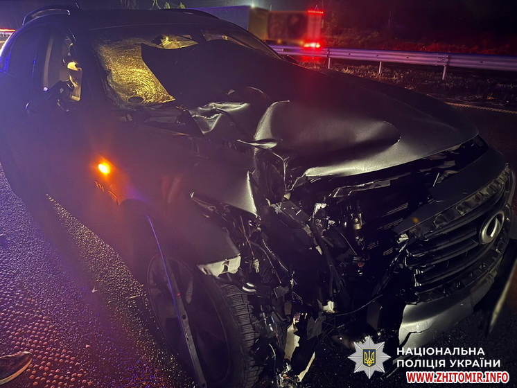 «Подія сталася 26 листопада близько 18:05 на 228 км автошляху Київ - Чоп, поблизу села Олександрівки. На місці події працювала слідчо-оперативна група Звягельського районного відділу поліції. За попередньою інформацією, 56-річний киянин, перебуваючи за кермом автомобіля Infiniti, під час руху в напрямку столиці здійснив наїзд на жінку, яка перетинала автошлях на неосвітленій ділянці дороги», - йдеться в повідомленні.