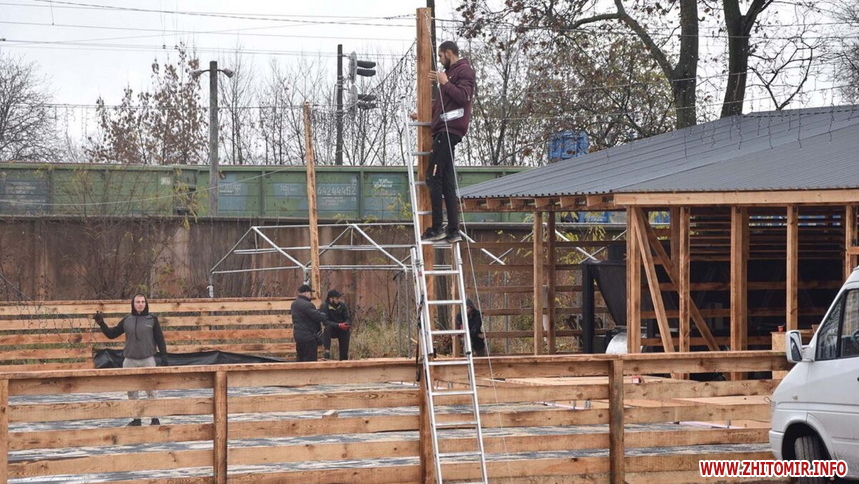У Коростені біля міського Палацу культури в жовтні почали монтувати ковзанку, також готується запуск локації з атракціонами та буфетом. Святковий майданчик облаштовує приватний підприємець, тож розваги будуть платними.