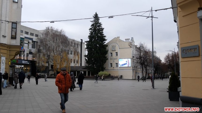 Цього року у Житомирі не встановлюватимуть та не прикрашатимуть новорічну ялинку, але напередодні Різдва, на живій ялинці, що росте на Михайлівській, увімкнуть гірлянду.