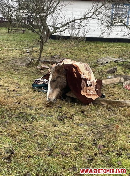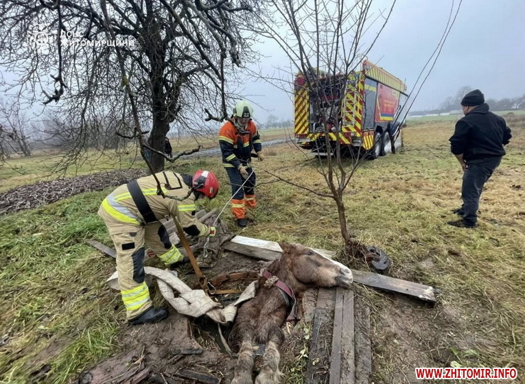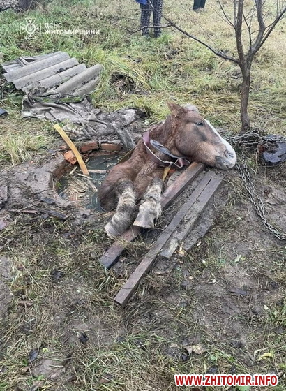 «Подія сталася вчора у селі Дашинка Житомирського району. Кінь провалився задніми ногами до занедбаного триметрового колодязя й пробув там близько півтори години. Увесь цей час налякані власники намагалися витягнути його власними силами, але марно — холодна вода на дні колодязя та слизькі стінки лише ускладнювали ситуацію», - йдеться у повідомленні.