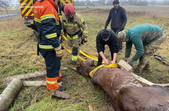 На допомогу прибули бійці ДСНС. Вони обв’язали тварину рятувальною мотузкою та за допомогою лебідки на пожежному автомобілі обережно витягнули виснаженого коня на поверхню. Операція по порятунку тривала годину.