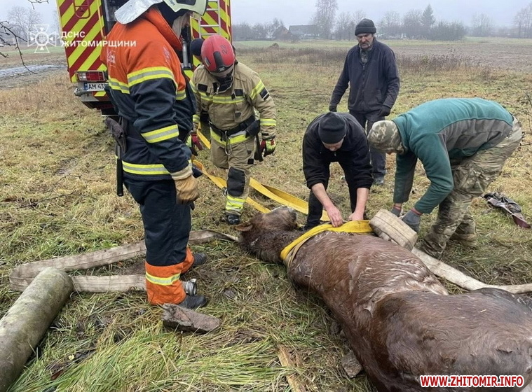 Як повідомляв Житомир.info, 17 червня 2025 року у с. Кошелівка Пулинської громади кінь провалився у 4-метровий колодязь. Тварину діставали рятувальники.