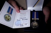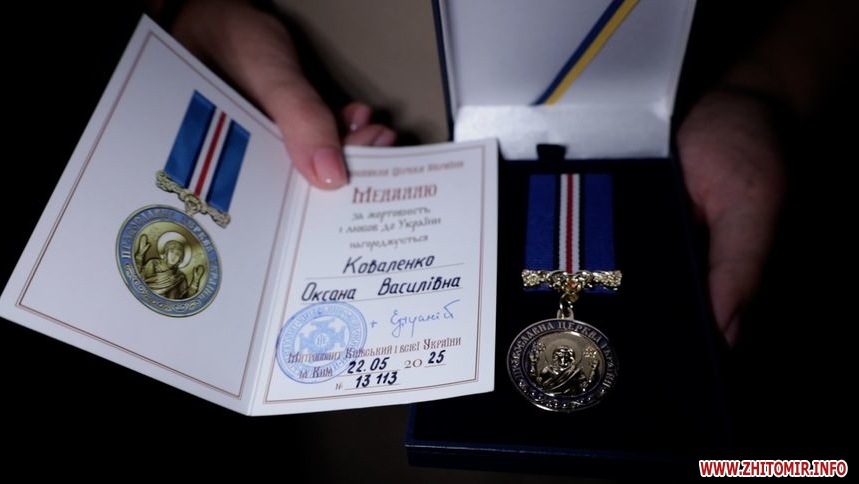 «Мама загиблого Героя, матроса 503-го окремого батальйону Голуба Артура. Сьогодні я отримала надзвичайну нагороду як волонтер. Для мене найголовніше — це зв’язок із моєю дитиною, адже коли він загинув, його теж нагородили саме такою нагородою», – ділиться волонтерка з Малина Оксана Коваленко.