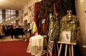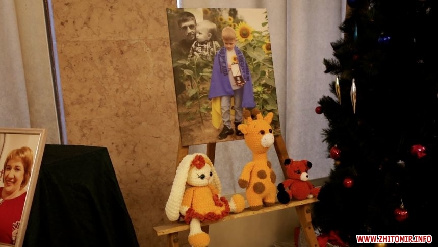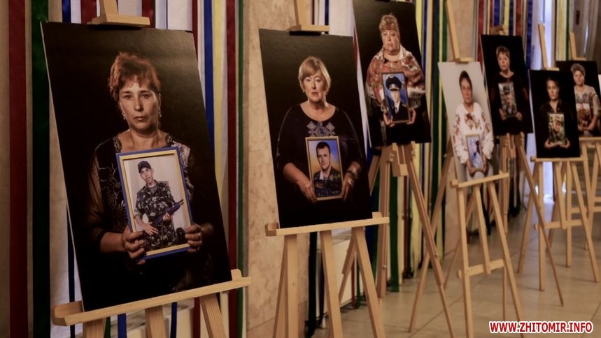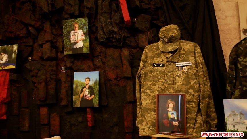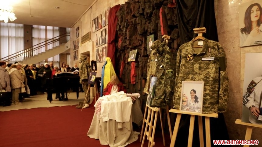 У фоє театру представили портрети Героїв із Житомирщини, речі полеглих та символічну інсталяцію «МАТИ».