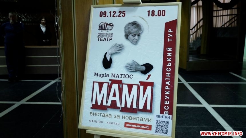 У житомирському театрі 9 грудня Рівненський академічний музично-драматичний театр показав благодійну виставу «МАМИ» за новелами Марії Матіос для матерів загиблих воїнів.