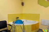 У реанімаційному відділенні перебувають діти з патологіями та вадами розвитку. Зараз тут — маля, підключене до ШВЛ через вроджену пневмонію. Але навіть у таких випадках маму не відокремлюють: вона живе у сусідній палаті, відвідує дитину, годує та проводить із нею якомога більше часу.