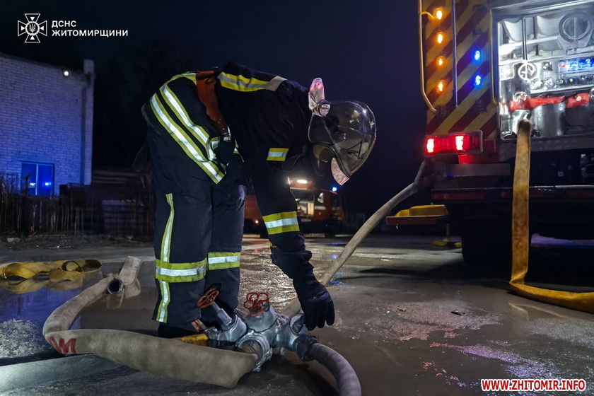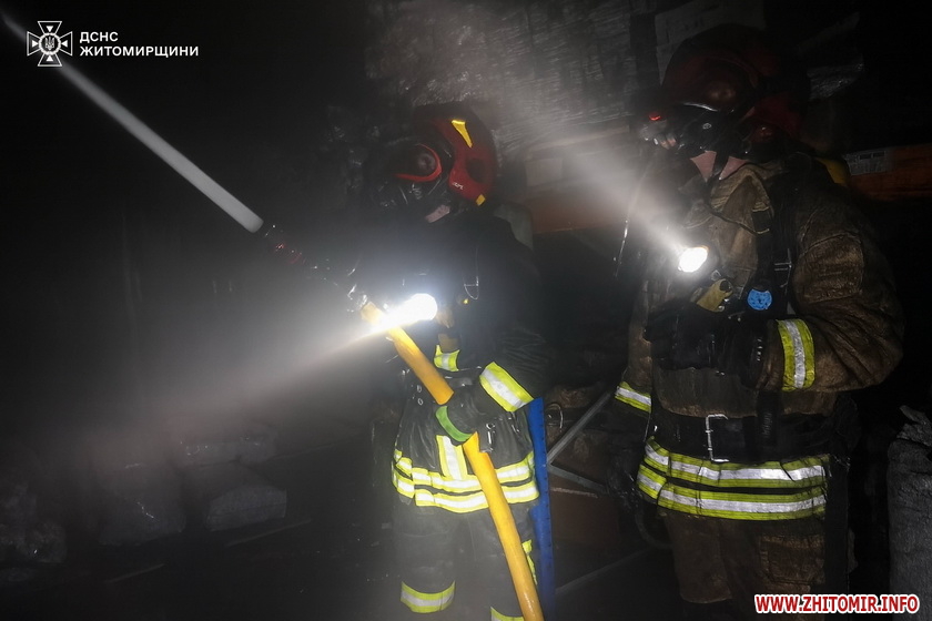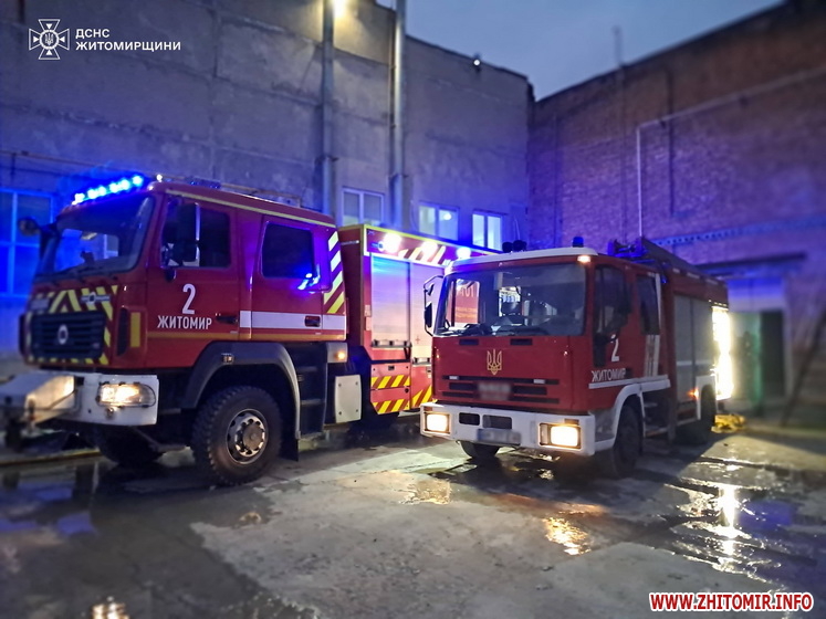 «12 грудня о 15:43 до Служби порятунку «101» надійшло повідомлення про пожежу в складській будівлі (площею 2000 кв. м) одного з підприємств м. Житомир. На місці події бійці ДСНС встановили, що всередині спостерігається щільне задимлення. Існувала загроза поширення полум’я будівлею. Силами рятувальників пожежу ліквідовано. Вогнем знищено вироби, що там зберігалися на площі 350 кв. м. Подальшого поширення не допущено. Загиблих та травмованих немає», - йдеться в повідомленні.