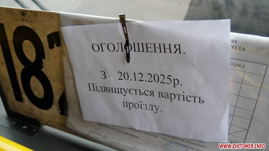 Станом на 16 грудня близько 10 перевізників приміських та міжміських автобусних маршрутів направили листи до департаменту регіонального розвитку Житомирської ОДА про намір підвищити тариф.