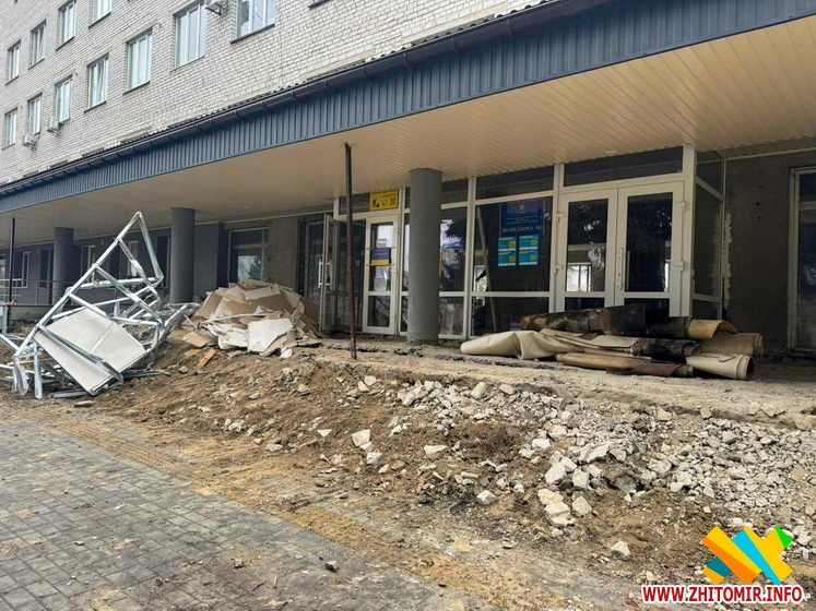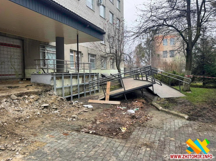 Як повідомляв Житомир.info, департамент ОВА проводить реконструкцію центрального входу поліклініки №2 КП «Лікарня №1» ЖМР. У листопаді 2025 року для проведення цих робіт в ОВА оголосили тендер, очікувана вартість закупівлі становила 12 млн 629 тис. 086,80 грн. Натомість підрядник управління капітального будівництва міської ради ремонтує лівий вхід.