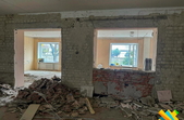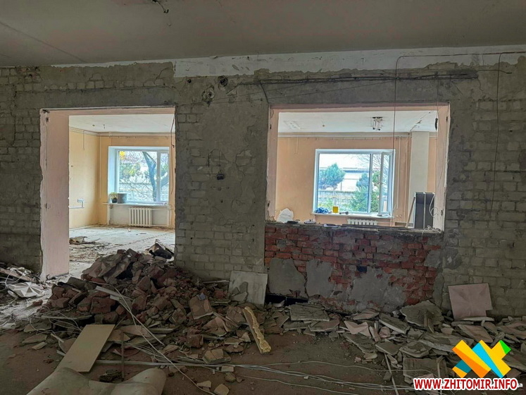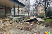 Наразі в поліклініці вже виконали близько 90% демонтажних робіт усередині будівлі, а також демонтували старі сходи та пандуси. Роботи тривають