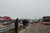 На місці присутні представники поліції, деякі водії намагаються вмовити учасників акції пропустити транспорт.