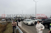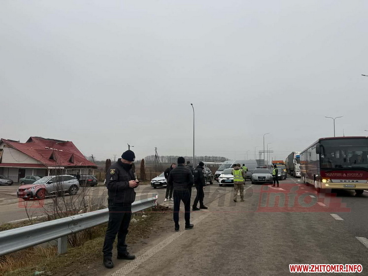 Журналіст Житомир.info повідомляє, що люди на 10 хвилин блокують рух міжнародною трасою, потім 10 хвилин пропускають автівки.