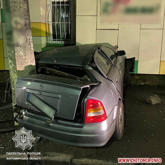 Вранці у Житомирі на вулиці Михайла Грушевського сталася ДТП: п’яний водій Opel не впорався з керуванням і в’їхав у стіну будинку.