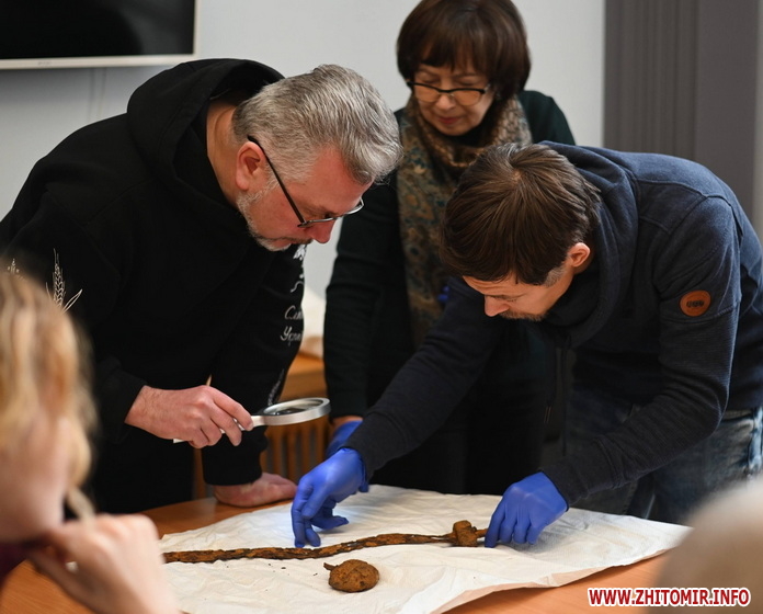 «Напередодні Різдва наш музей отримав несподіваний подарунок – Віктор Мощенко та його донька Наталія принесли до музею древній меч, випадково знайдений під Радомишлем, та дві сокири. Цей винятковий та рідкісний меч датується другою половиною 10 – початком 11 ст. Саме такими мечами були озброєні варязькі дружини київських князів, а те, що меч було знайдено біля Радомишля невипадково, ця знахідка пов’язана з трагічними сторінками історії нашої землі», - йдеться у повідомленні.