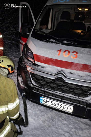 Сьогодні о пів на шосту рятувальники надавали допомогу працівникам швидкої допомоги у с. Коренівка Коростенського району. Вони їхали з хворою людиною до лікувального закладу та застрягли у сніговому заметі. Фахівці ДСНС приєднали трос до пожежного автомобіля та відбуксирували швидку на безпечну ділянку дороги. Після чого медики змогли продовжити свій рух далі та доправити хворого до лікувального закладу.