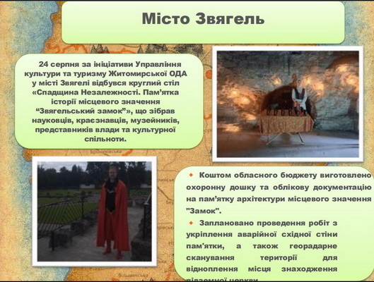 «За ініціативи управління культури та туризму Житомирської ОВА на Житомирщині започатковано культурно-історичний проєкт «Спадщина Незалежності. Житомирщина – 2025». Ініціатива стала важливим кроком у стратегії збереження історичної спадщини регіону та переосмисленні культурного простору області. Проєкт об’єднав зусилля влади, експертного середовища та громадськості навколо спільної мети — зупинити руйнацію об’єктів культурної спадщини та інтегрувати їх у сучасні туристичні та економічні процеси», - йдеться в повідомленні.