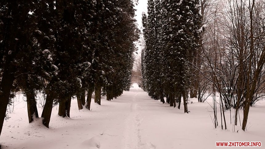 Житомирський ботанічний сад цієї зими перетворився на казку. Дерева й кущі вкриті пухким снігом. Тут немає міського шуму, лише тиша. Особливої атмосфери додають годівниці для птахів, розміщені на території саду.