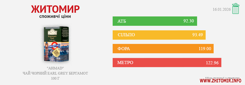 Моніторинг здійснено на основі інформації, отриманої за методом контрольної закупки 16.01.2026 р. у місцях продажу: АТБ, пр. Миру, 15а, Фора, вул. Київська, 106, Метро, вул. Ватутіна, 55в, Сільпо, вул. Житній ринок, 1