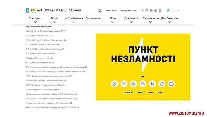 У разі потреби, знайти адреси пунктів незламності можна в застосунку Дія, або на сайті Житомирської міської ради.