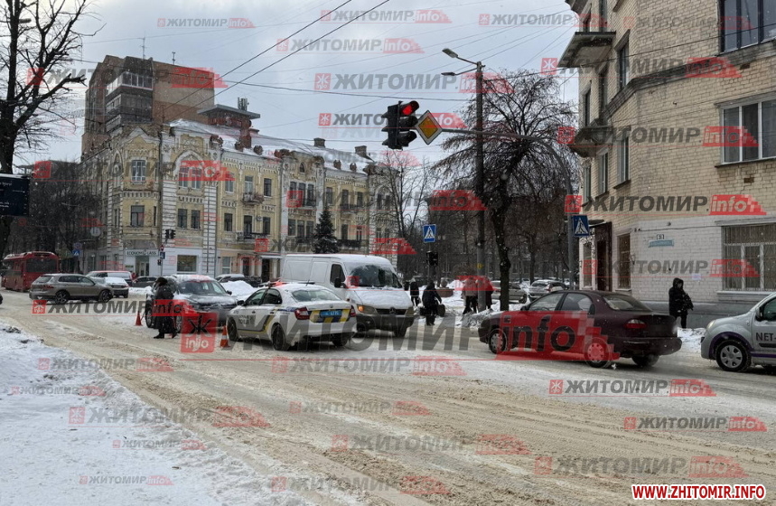 Вранці 16 лютого на перехресті вулиці Велика Бердичівська та Старого бульвару під колеса легкового авто потрапив пішохід. На дорозі утворився затор, на місці ДТП працюють патрульні.