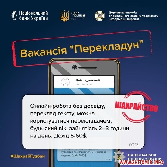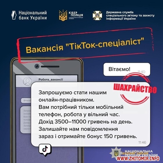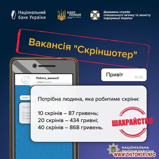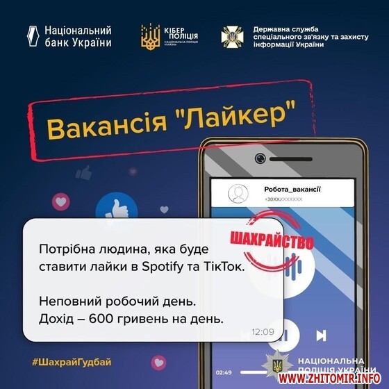 “Користувачі соціальних мереж нерідко отримують повідомлення про можливість «легкого онлайн-заробітку». Ошуканці обіцяють великий прибуток за прості завдання – вподобайки, коментарі чи бронювання товарів. Проте замість очікуваної винагороди охочі, як правило, зазнають лише фінансових втрат. Наприкінці січня схожу пропозицію в месенджері отримав 54-річний житомирянин. Нібито для заробітку потрібно було лише поставити вподобайку біля оголошення про продаж товару та надіслати скрін роботодавцю”, - йдеться у повідомленні.