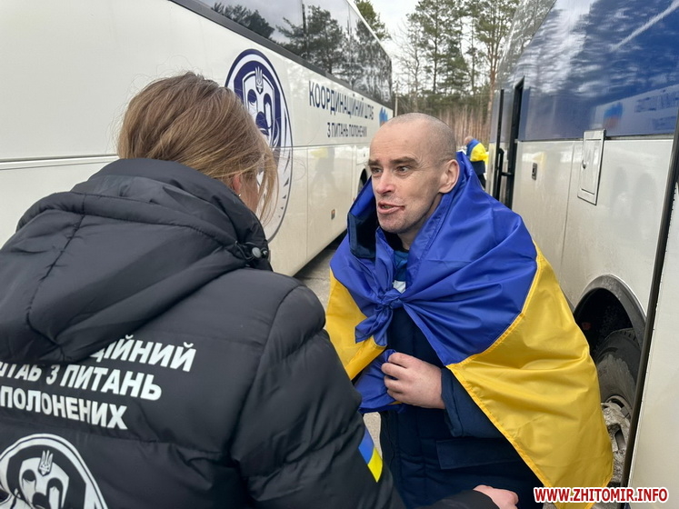 Нагадаємо, 5 березня з російської неволі повернулися 200 військовослужбовців, деякі з них пробули в полоні майже чотири роки. Серед звільнених з полону було 13 захисників з Житомирської області. Зокрема, під час першого дня обміну до України повернули військових з Малина, сіл і селища Житомирського, Звягельського та Коростенського районів.