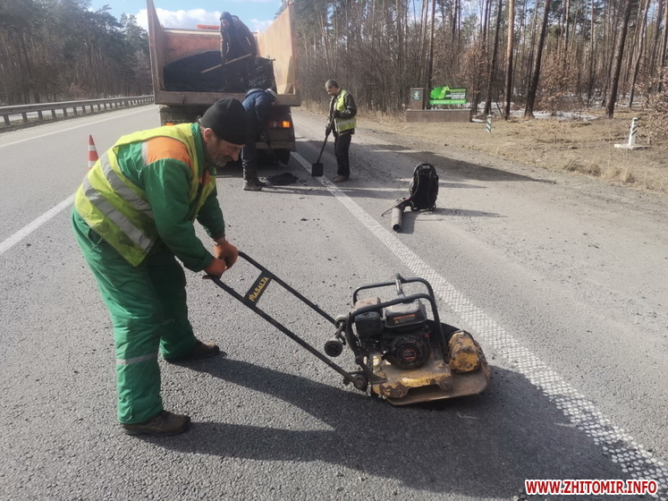 Як повідомляв Житомир.info, станом на 2 березня 2026 року дорожники асфальтували ями на трьох міжнародних трасах у Житомирській області. 3 березня у Службі відновлення поінформували, що через потепління роботи з ліквідації аварійної ямковості гарячими асфальтобетоном стартували на автошляху М-06 Київ – Чоп, зокрема на об’їзній Коростишева.