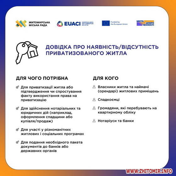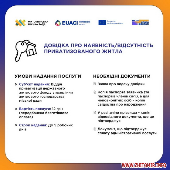 - довідка про наявність або відсутність приватизованого житла;