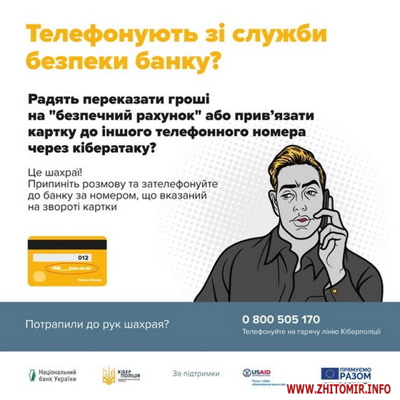 «Захист рахунку від несанкціонованих операцій»: житомирські поліцейські застерігають від телефонних шахраїв.