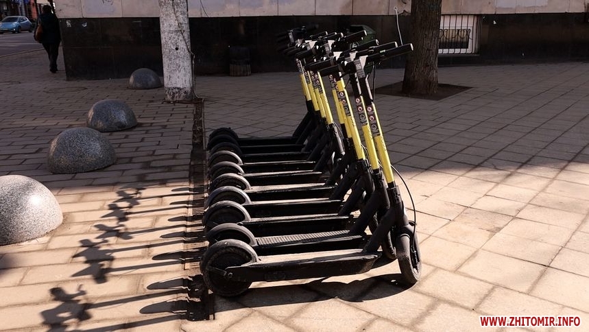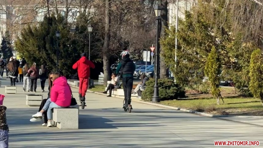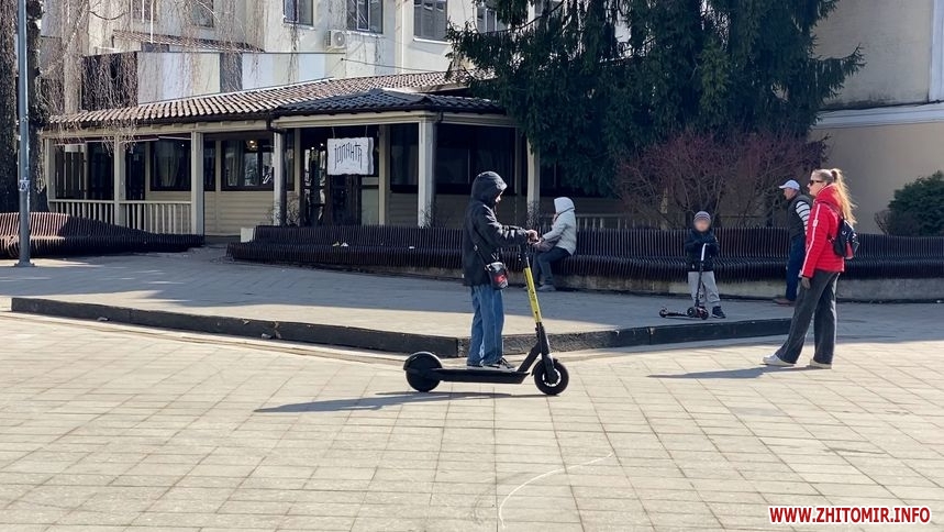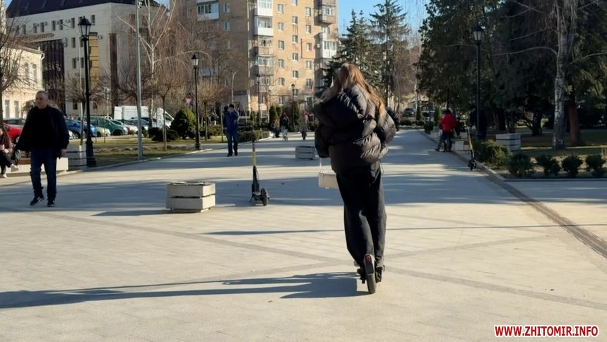 Сервіси оренди електросамокатів відновили роботу після зимової перерви у Житомирі. Від початку березня цей вид транспорту дедалі частіше використовують у місті. Проте досі не врегульовано, де можна на них пересуватися, тому їздять скрізь: у парках, скверах, на пішохідній вулиці та на тротуарах серед пішоходів.