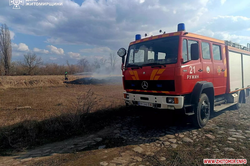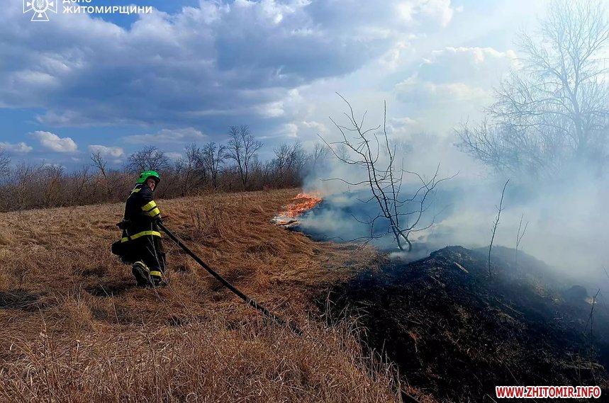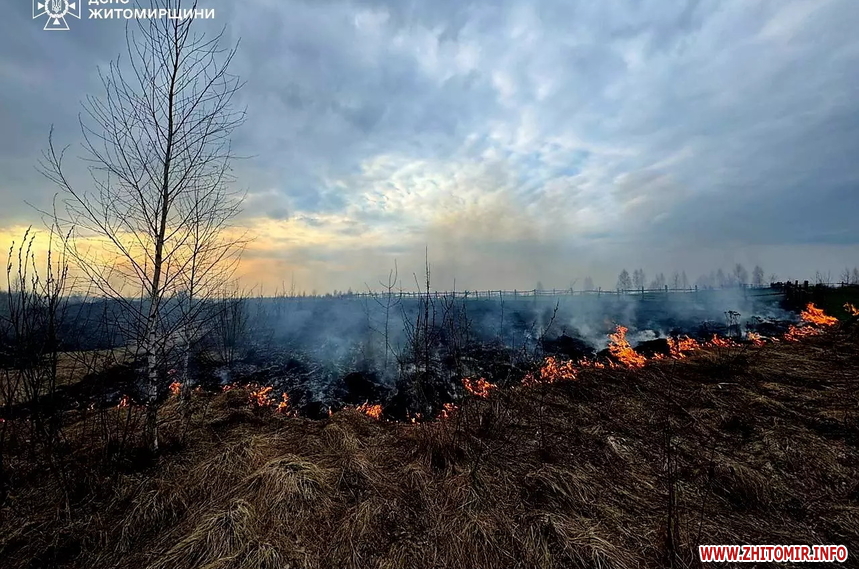 Як повідомляв Житомир.info, протягом доби 24 березня 2026 року рятувальники загасили у Житомирській області 22 пожежі сухої трави, вогонь пройшов 16 га землі. Також бійці ДСНС дві доби торф’яник.