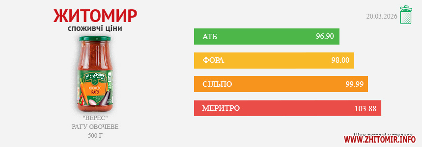 Моніторинг здійснено на основі інформації, отриманої за методом контрольної закупки 20.03.2026 р. у місцях продажу: АТБ, пр. Миру, 15А, Фора, вул. Київська, 106, Метро, вул. Ватутіна, 55-в, Сільпо, вул. Житній ринок, 1