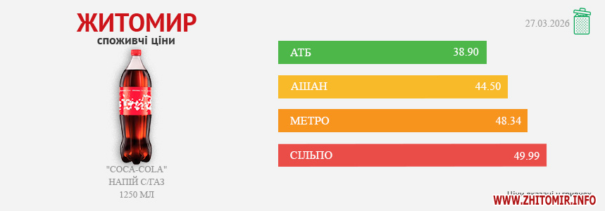 Моніторинг здійснено на основі інформації, отриманої за методом контрольної закупки 27.03.2026 р. у місцях продажу: АТБ, пр. Миру, 15А, Ашан, вул. Київська, 77, Метро, вул. Ватутіна, 55-в, Сільпо, вул. Житній ринок, 1