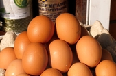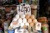 Ціна на курячі яйця також зросла. Продавці запевняють – це не пов’язано з попитом перед Великоднем. Найдешевші коштують – 70 грн, найдорожчі домашні – 100 грн.