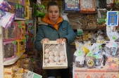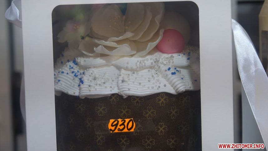 «Найбільша паска коштує 930 гривень, її вага 1,1 кг. Крафін з сухофруктами коштує 880 грн. Є маленькі пасочки 250 г – 230 гривень коштує», – говорить продавчиня Людмила.