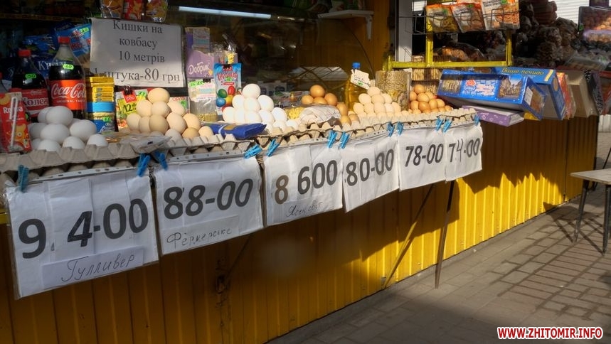 «Яйця білі С0 по 72 гривні. Фермерські, які привозять з Вінниці продаємо за 70 грн, вони також С0. Ціна з минулого року зросла на 5-6 гривень, через доставку, бо паливо подорожчало», – розповідає продавчиня Надія.