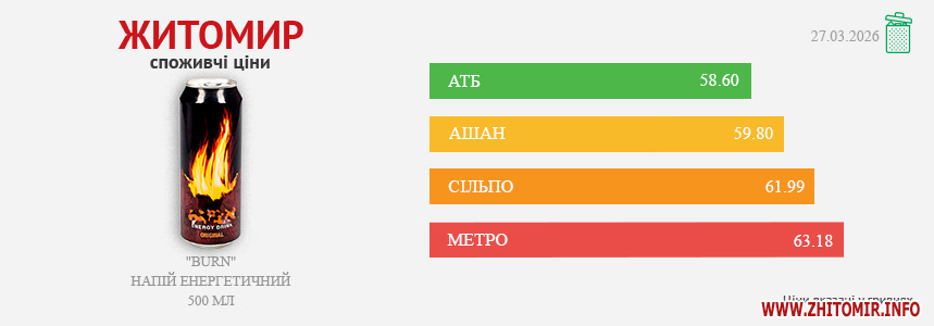 Моніторинг здійснено на основі інформації, отриманої за методом контрольної закупки 27.03.2026 р. у місцях продажу: АТБ, пр. Миру, 15А, Ашан, вул. Київська, 77, Метро, вул. Ватутіна, 55-в, Сільпо, вул. Житній ринок, 1