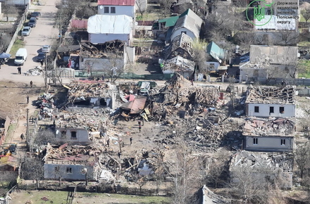 Після завершення роботи правоохоронних органів та огляду місць подій екоінспектори провели обстеження територій, зокрема з використанням дронів, з метою фіксації наслідків руйнувань, визначення площ засмічення територій, що виникли внаслідок утворення відходів руйнації, а також слідів пожеж у місцях влучань.