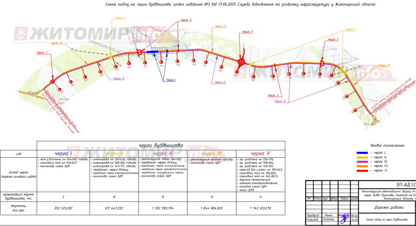 Сумарна вартість двох черг реконструкції ділянки дороги М-06 Київ – Чоп, яка є північним обходом м. Житомир, понад 2 млрд грн.