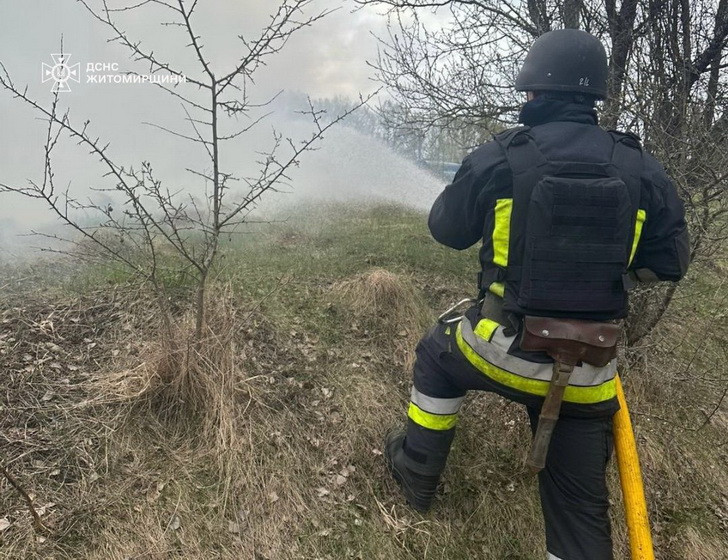 У Коростені рятувальники загасили пожежу сухої трави, яка зайнялась внаслідок атаки рф дронами.