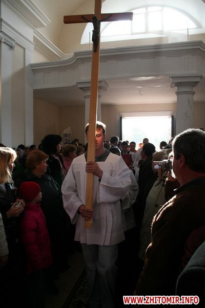 В минулу суботу, 11 жовтня, в місті Ружині відбулось друге відкриття і освячення римо-католицького храму „Тіла божого”. Ця дуже красива і велична споруда, яку побудували в 1815 році, має свою сумну історію. Колись вона була архітектурною прикрасою Ружина. Та при радянській владі храм буквально знищили, знесли купол, зробили там вязницю. А потім будівлю використовували під авторемонтні майстерні. Вісімнадцять років тому, люди все-таки відстояли цю споруду і тут знову стала проводитись служіння. Але щоб повернути храму його історичне обличчя – відбудувати, реставрувати - про це парафіяни не могли навіть мріяти.