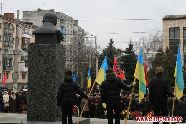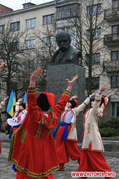 В Житомирі поруч із пам’ятником Тараса Григоровича Шевченко зібралося близько півтори сотні чоловік, які прийшли вшанувати пам'ять великого Кобзаря, Геніального поета та художника, пророка та батька українського народу. Вірші його є досі актуальними будуть такими доки існуватимуть українські люди.
